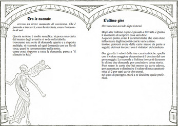 incontreremo le altre anime abitanti il cimitero e verranno a trovarci strani individui, ed ogn'uno di essi sarà spunto per domande e riflessioni, mentre il cimitero si allarga ed il tempo passa.